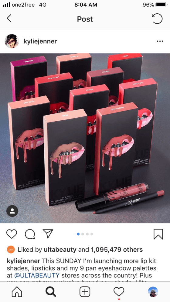 she launched her lip kit, which sold out almost immediately. See post from her IG